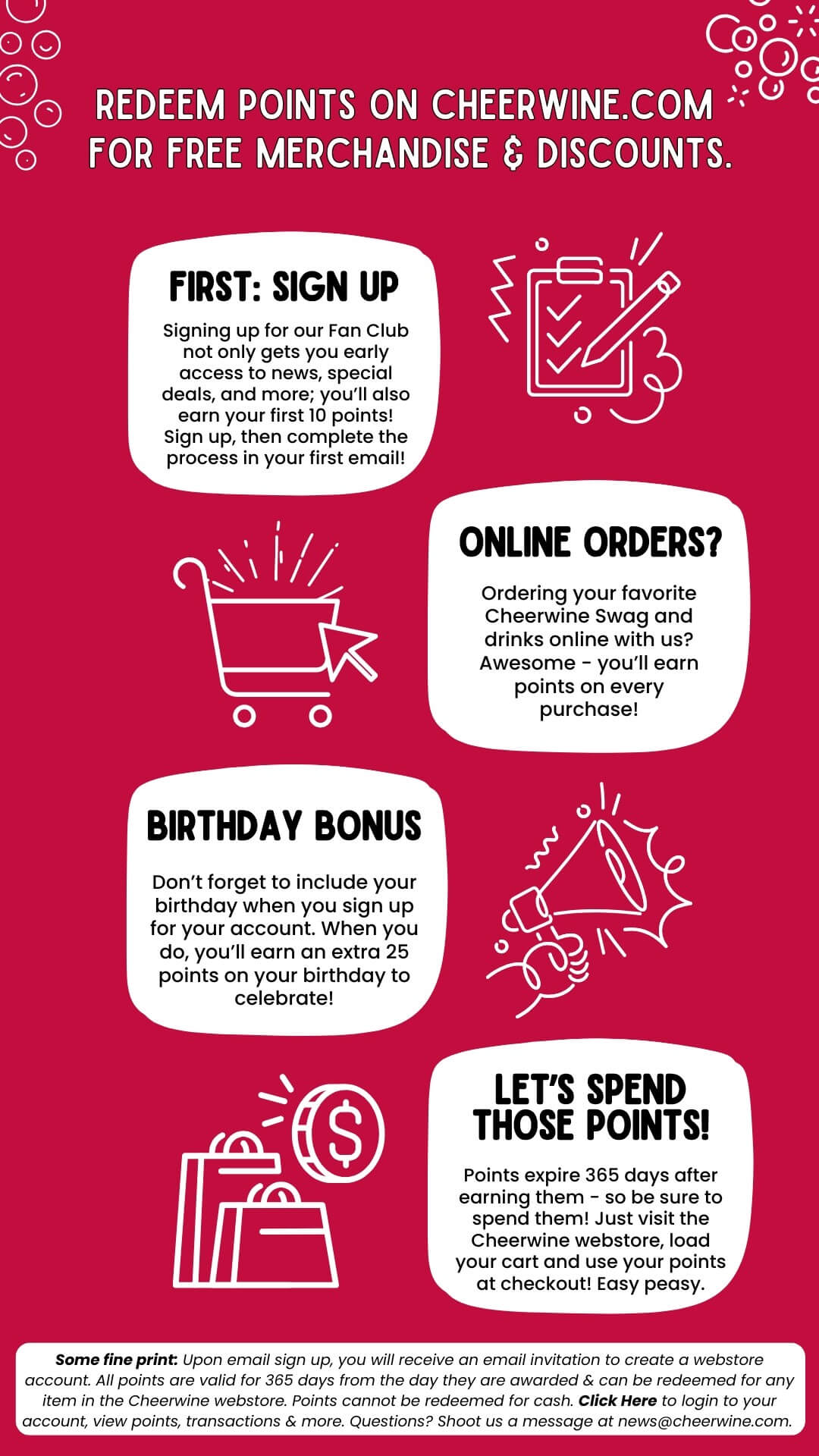 As a Fan Club member, you will get early access to news, special deals, rewards, event info and so much more. Plus, you’ll be able to connect with fellow fans and help us make Cheerwine even better. After all, Cheerwine is more than just a delicious cherry soft drink, it’s a way of life.